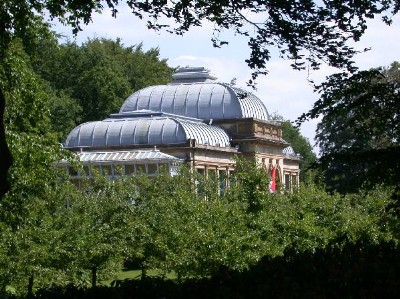 A view at the "Orangerie" or greenhouse, which mow doubles as a fancy tearoom.